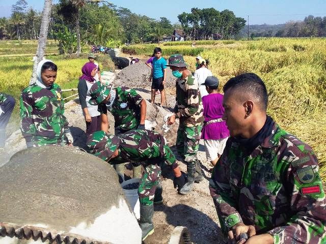 SALATIGA - Program fisik TNI Manunggal Membangun Desa (TMMD) Reguler ke-102 Kodim 0714/Salatiga di wilayah Korem 073/Makutarama terus dikebut agar bisa selesai sesuai target yang telah ditentukan. Tim yang dilapangan dalam pengecoran jalan bekerja keras untuk menyelesaikan pengecoran jalan di tengah sawah desa Bonomerto kecamatan Suruh kabupaten Semarang.
