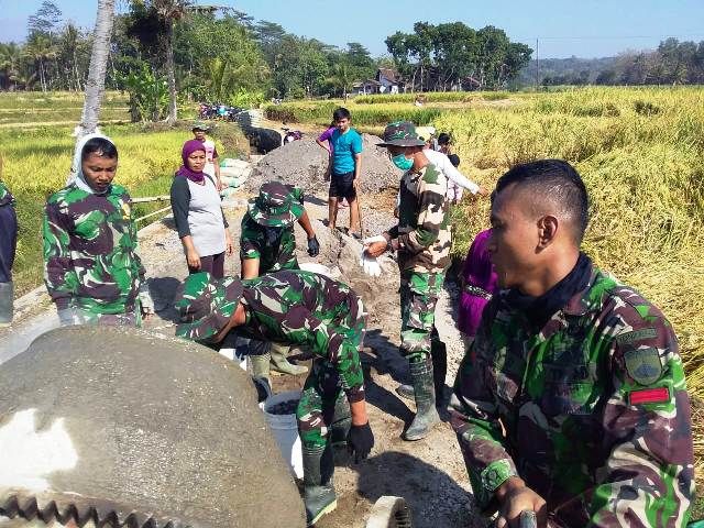 SALATIGA - Program fisik TNI Manunggal Membangun Desa (TMMD) Reguler ke-102 Kodim 0714/Salatiga di wilayah Korem 073/Makutarama terus dikebut agar bisa selesai sesuai target yang telah ditentukan. Tim yang dilapangan dalam pengecoran jalan bekerja keras untuk menyelesaikan pengecoran jalan di tengah sawah desa Bonomerto kecamatan Suruh kabupaten Semarang.