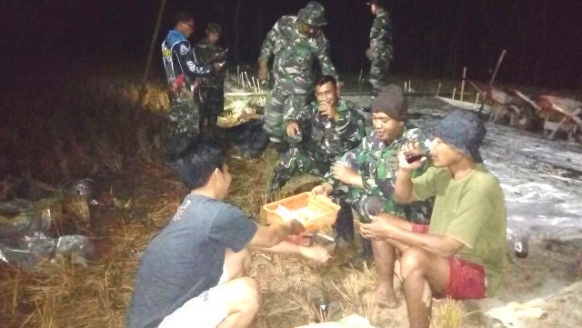 Hal itu terlihat anggota Satgas saat istirahat sejenak bersama warga, mereka terlihat akrab duduk santai sambil bersenda gurau menikmati minuman teh panas dan kue seadanya sebagai penghangat dinginya malam setelah melakukan pekerjaan pengecoran pada malam hari. Menurut Sertu Sutikno kebersamaan ini begitu indah dan menjadikan momen untuk di kenang, itulah salah satu cara untuk menjalin rasa kekeluargaan. Walau hanya sekedar minum segelas teh panas, tanpa kita sadari akan terjalin ikatan emosional TNI dan warga.