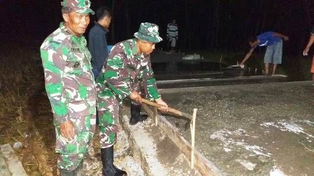 Srikandi-Srikandi Pun Ikut Kerja Lembur Pengecoran Jalan Bersama Satgas TMMD