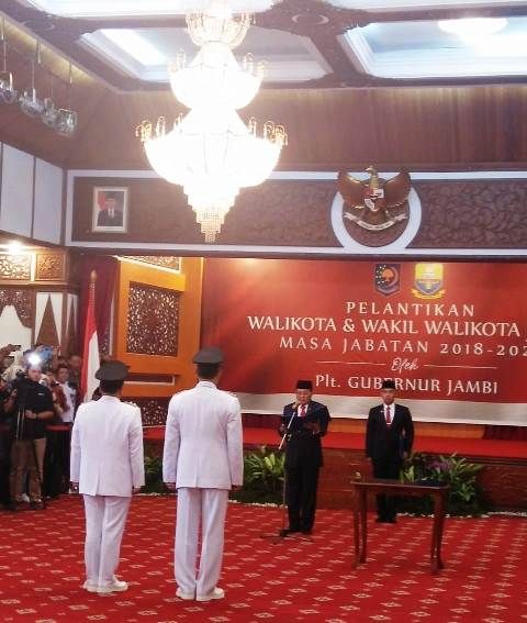 JAMBERITA.COM - Plt Gubernur Jambi Fachrori Umar resmi melantik dan mengambil sumpah Syarif Fasha sebagai Walikota Jambi dan Maulana sebagai Wakil Walikota Jambi pagi ini Rabu (7/11/2018).