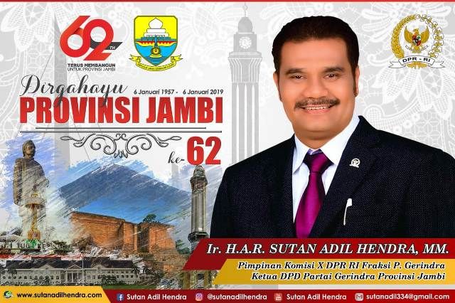 Anggota DPR RI dari Provinsi Jambi Sutan Adil Hendra (SAH) mengatakan, dengan makna tersebut sangat relevan bila Peringatan Hari Jadi ke 62 dijadikan sebagai momentum melihat potret Jambi di masa lalu dan masa kini.