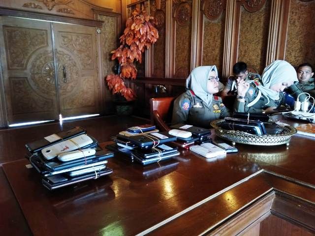Menariknya, kali ini rapat yang berlangsung tertutup itu, tampak semua Smartphone (HP) para pejabat yang mengikuti rapat itu dikumpulkan dan dititip di Lobi Pos Penjagaan Satpol-PP.