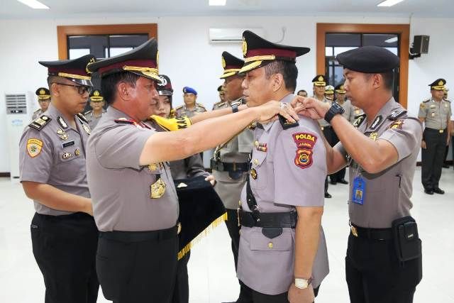 Serah Terima Jabatan (Sertijab) dan pengambilan sumpah jabatan dilaksanakan di Aula Mapolda yang langsung di Pimpin oleh Kapolda Jambi Irjen Pol Muchlis, pagi tadi pukul 08.00 WIB, Selasa (26/3/2019).