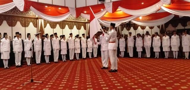 JAMBERITA.COM - Setelah dua jam lebih harus menunggu akhirnya Calon Paskibra Provinsi Jambi Tahun 2019 resmi dikukuhkan, pukul 20.30 WIB di Aula Rumdis Gubernur Jambi, Kamis (15/8/2019).