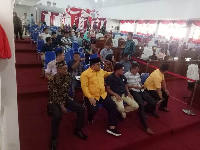 "Gubernur, Bupati, wakil Bupati, para Pimpinan DPRD tetangga dan Sekwa, Tokoh Agama, Tokoh Adat, OPD Perimerinta, Forkominda keluarga anggota DPR terpilih para tim relawan, " Kata Sekwan.