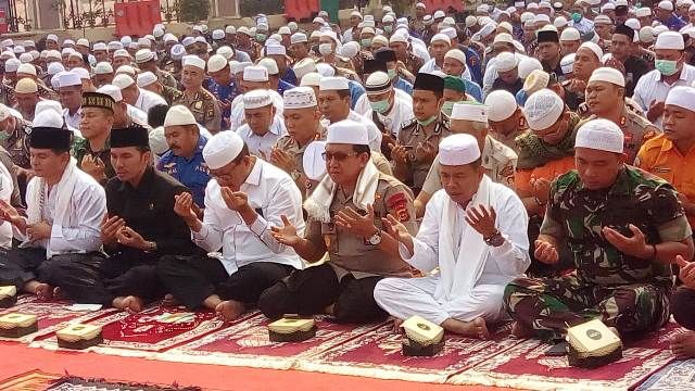 Para Pejabat Utama Polda Jambi, Wakil Walikota Jambi, Para Kapolresta dan Kapolres Jajaran, Para personil TNI, POLRI dan ASN Pemprov Jambi dan Kota Jambi dan para tamu Undangan Sholat Istisqo.(afm)