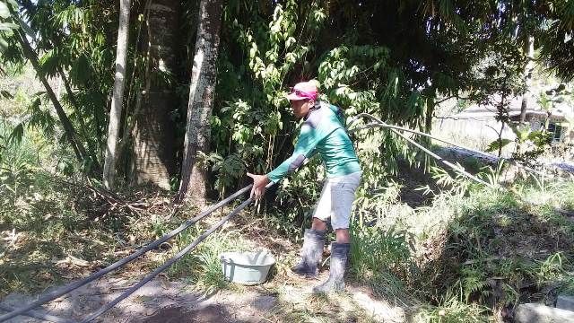 ''Air yang digunakan untuk pengecoran jalan TMMD, sebagian diambilkan dari bak-bak penampungan air milik warga yang jauh dari lokasi pekerjaan, Untuk itu tiap harinya saya harus mengurai pipa menyesuaikan perkembangan hasil pekerjaan,'' tutur Nurhadi. (Pendim 0724/Boyolali)