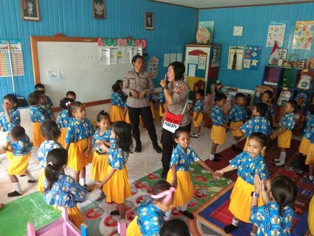 JAMBERITA.COM, NABIRE- Sebanyak 60 murid TK Kemala Bhayangkari, Distrik Nabire, Kabupaten Nabire, Papua, antusias mengikuti Polisi Pi Ajar dari personel Satgas Binmas Noken Polri, Jumat (11/10).