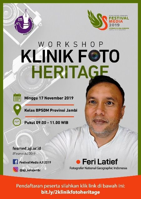 JAMBERITA.COM- Feri Latief, Kontributor Foto dari National Geographic Indonesia bakal mengisi workshop Klinik Foto Heritage. Kegiatan workshop tersebut, merupakan rangkaian dari pada Festival Media (Fesmed) Aliansi Jurnalis Independen (AJI).