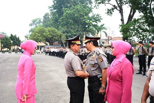 Upacara langsung dipimpin Kapolda Jambi Irjen Pol Drs Muchlis AS. Adapun personil yang mendapat kenaikan pangkat penghargaan adalah AKBP Ahmadi dan AKBP Wijanarko.