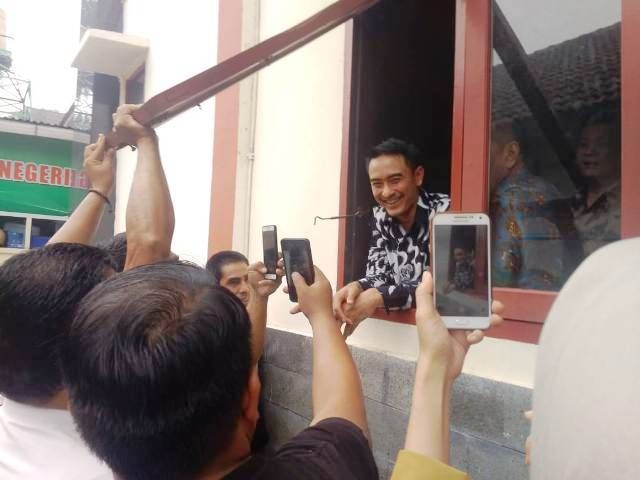 Ia pun menyempatkan menyapa masyarakat lewat jendela.
