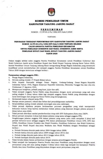Untuk lebih lengkap baca: Pengumuman KPU Tanjabbar