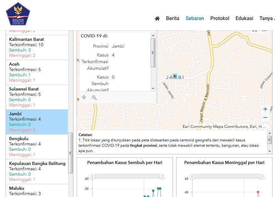 Berdasarkan data tersebut, khususnya di Provinsi Jambi ada penambahan pasien yang terkonfirmasi positif Covid-19 yaitu 2 orang."Iya baru diumumkan pusat," ujar Jubir Penanganan Covid-19 Pemprov Jambi membenarkan.