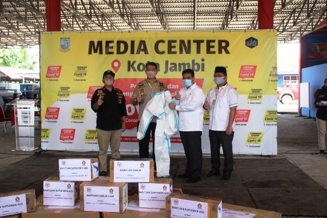Dalam acara yang dihadiri Walikota Jambi H. Syarif Fasha, Wakil Walikota Jambi Dr. dr. H. Maulana., MKM., Ketua DPRD Kota Jambi Putra Absor Hasibuan, Anggota DPRD Kota Jambi Fraksi Gerindra Jumat 29 Mei 2020 di Posko Gugus Tugas Percepatan Penanganan COVID-19 Kota Jambi itu, SAH menyerahkan Bantuan Alat Pelindung Diri (APD) All Cover, Masker, Hand Sanitizer, Sabun, Vitamin hingga Suplemen Gizi (Extrafooding).