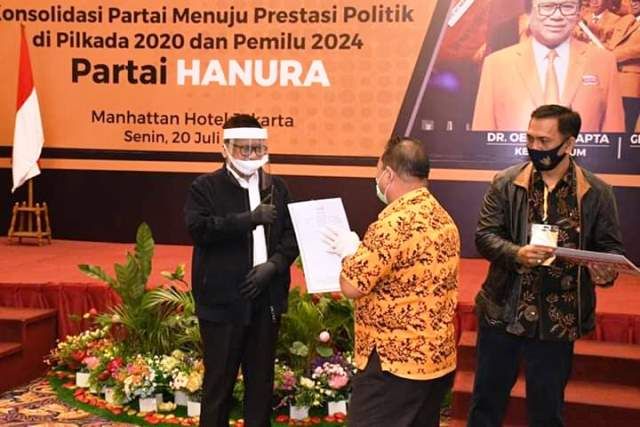 JAMBERITA.COM- Partai Hati Nurani Rakyat (Hanura) Provinsi Jambi resmi mengusung bakal calon gubernur Fachrori Umar-Safrial di Pilgub Jambi 2020. Surat keputusan mengusung ini langsung disampaikan Ketua DPP Hanura Oesman Sapta Odang.
