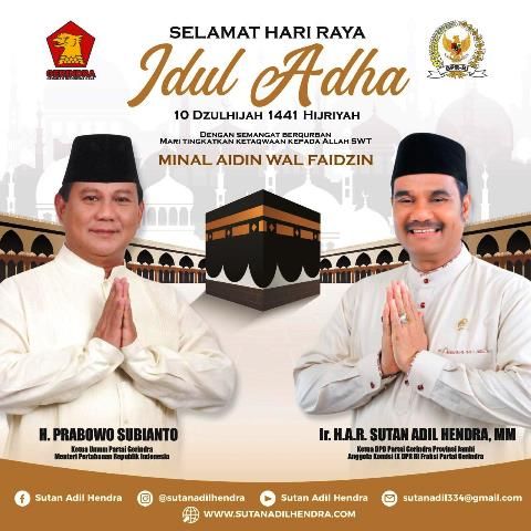 Pernyataan ini disampaikan ketua DPD Partai Gerindra Provinsi Jambi Sutan Adil Hendra (SAH) ketika memberi tausiyah makna kurban bagi seorang muslim (30/7) kemarin di Jambi.
