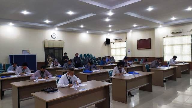 Sebelum mengikuti ujian keahlian dan kepatutan, seluruh peserta terlebih dahulu mengikuti ujian administrasi, pisikotes, tes tertulis hari ini dan tes wawancara besok.