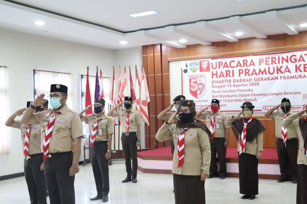 Upacara Hari Pramuka ke-59 pada Rabu, (12/8/2020) ini biasanya diselenggarakan secara langsung atau tatap muka kini dilakukan secara virtual mulai pukul 15.00 WIB.