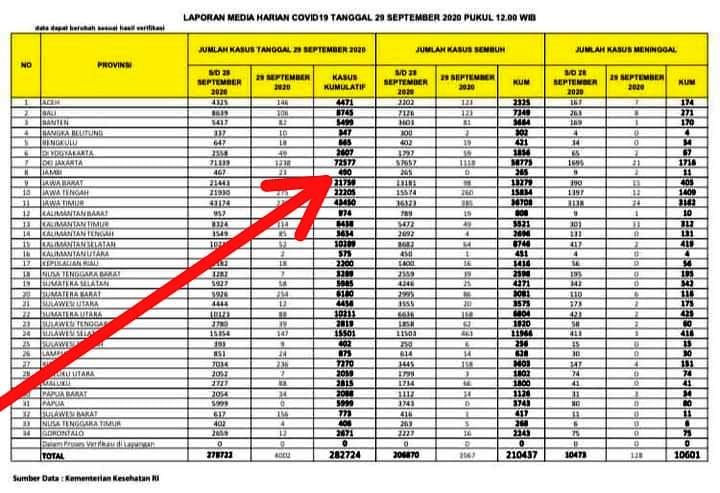 JAMBERITA.COM- Setelah dua hari berturut angka kasus Covid-19 di wilayah dalam Provinsi Jambi, hari ini malah semakin meningkat, Selasa (29/9/2020).