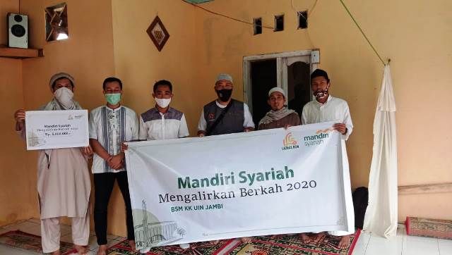 JAMBERITA.COM, JAMBI- Milad (ulang tahun) Bank Syariah Mandiri (Mandiri Syariah) pada 1 November 2020, Mandiri Syariah Area Jambi menggelar program BSM Mengalirkan Berkah (BMB) dengan menyerahkan bantuan berupa dana beasiswa untuk yatim piatu dan dhuafa sebesar Rp5 juta kepada Musholla Al-Ikhlas, Jambi.