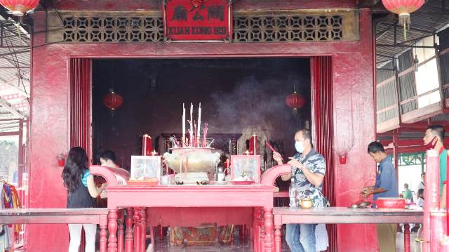 Sementara itu, di Klenteng, Kuang Kong Bio Minggu 1 November 2020 terlihat sedang ada kegiatan. Pengurus Klenteng Sugianto mengatakan jika mereka sedang merayakan ulang tahun klenteng yang ke-15. “Kebetulan sedang ulang tahun, jadi ibadah bersama,” katanya ramah saat menemui kami di tepi rumah ibadah ini.