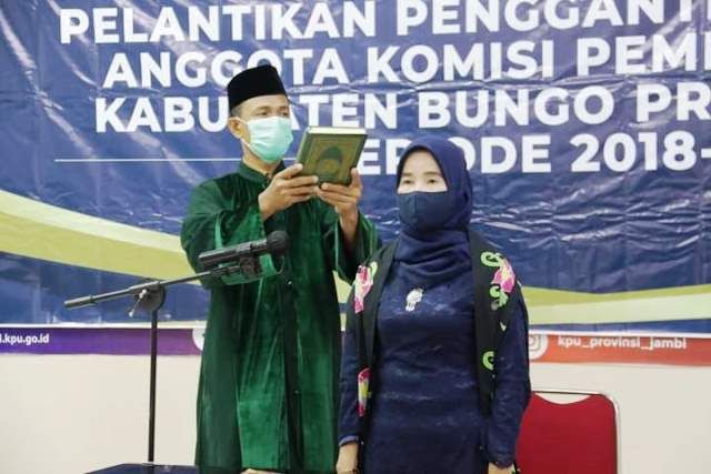 JAMBERITA.COM - KPU Provinsi Jambi akhirnya resmi melantik Maryam sebagai pergantian antar waktu (PAW) untuk Komisioner KPU Bungo, Senin (9/11/2020). Pelantikan sendiri berlangsung di Aula KPU Provinsi Jambi.