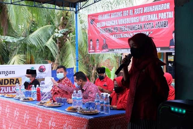 JAMBERITA.COM - Calon Wakil Gubernur Jambi nomor urut satu Ratu Munawaroh Zulkifli melakukan rapat konsolidasi internal Parta PDI Perjuangan di kelurahan The Hok Kecamatan Jambi Selatan Kota Jambi, Selasa (10/11/2020).