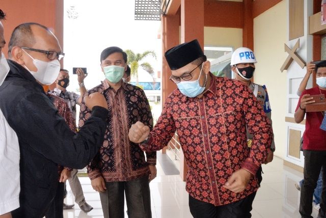 JAMBERITA.COM – Penjabat sementara (Pjs) Gubernur Jambi Ir.Restuardy (Ardy) Daud, menyambut kedatangan Kapolda Jambi yang baru, Irjen Pol. Albertus Rachmad Wibowo,S.IK di Bandara Sultan Thaha Jambi, Minggu (22/11/2020). Irjen Pol Albertus Rachmad Wibowo menggantikan Irjen Pol Firman Shantyabudi. Selanjutnya, Ardy Daud menjamu sarapan pagi Kapolda Jambi yang baru ini di ruang VIP bandara.