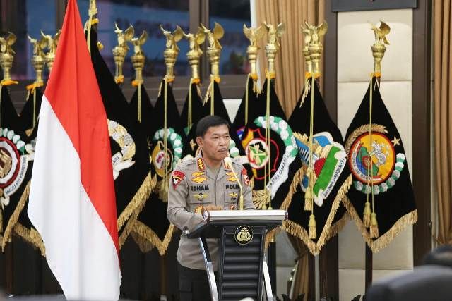 JAMBERITA.COM - Kapolri Jenderal Idham Azis memimpin apel Kepala Satuan Wilayah (Kasatwil) seluruh Indonesia di Gedung Rupatama Mabes Polri, Jakarta Selatan, Rabu (25/11/2020).