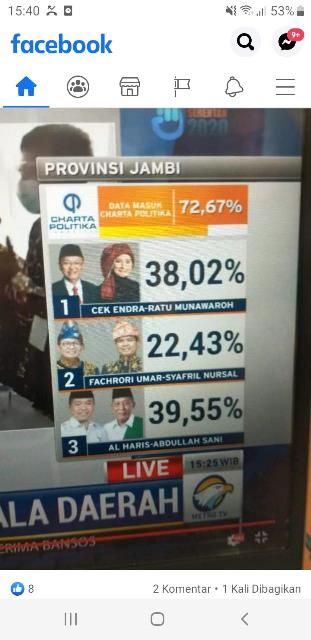Data masuk 53 Persen, Charta: CE-Ratu 38,23 %, Haris-Sani 40,39 %