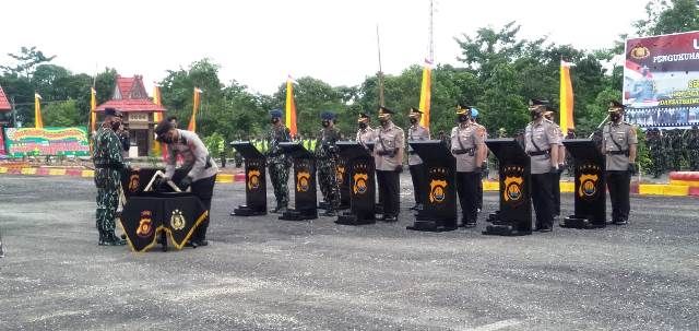 JAMBERITA.COM - Pasca TR Kapolri Jenderal Pol Idham Aziz, akhirnya lima Pejabat Utama resmi di lantik oleh Kapolda Jambi Irjen Pol A Rachmad Wibowo di lapangan terbuka Mako Brimob Bataliyon C Tebo.