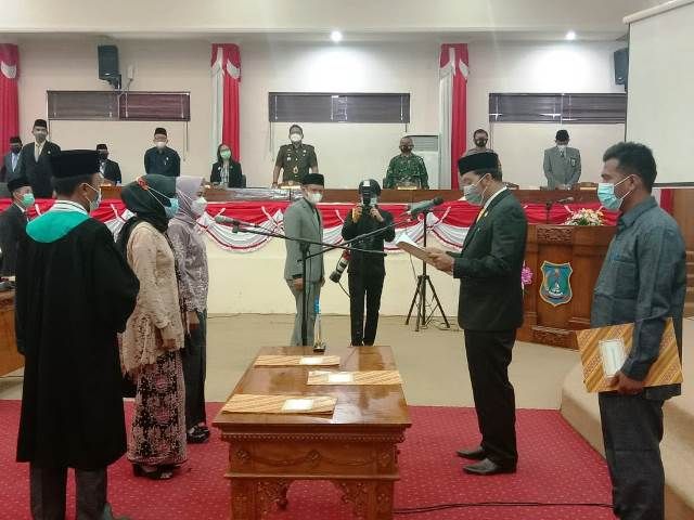 Proses Pelantikan PAW diawali dengan pengucapan sumpah/janji dan pemasangan PIN oleh Wakil Ketua DPRD Tanjabbar Ahmad Jahfar