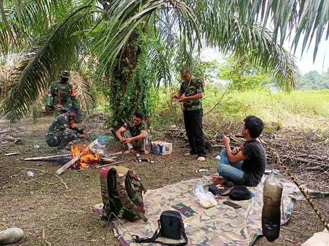 JAMBERITA.COM- Warga Desa Sungai Terap rela pergi berburu di malam hari mencari hewan unggas (burung ruak-ruak), demi menyatap makan siang bersama tim Satgas TMMD Kodim 0415/Batanghari, Selasa (12/2/2021) siang.