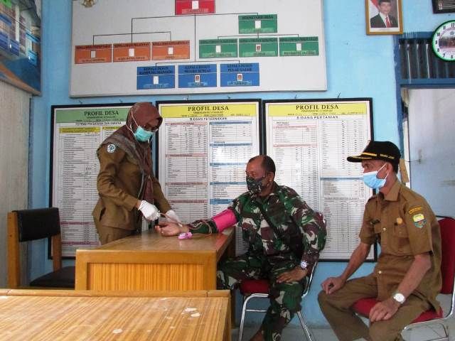 JAMBERITA.COM- Dalam pra TMMD ke 110 Kodim 0415/Batanghari, Satgas TMMD melakukan pengecekan kesehatan di Balai Desa Sungai Terap, Rabu (17/2/2021).
