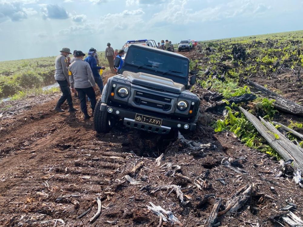 "Beberapa kali tim mengalami kendala hingga kendaraan Land Rover Kapolda pun terpaksa berhenti karena terjerembab dalam jalur yang merupakan lahan gambut," terangnya.