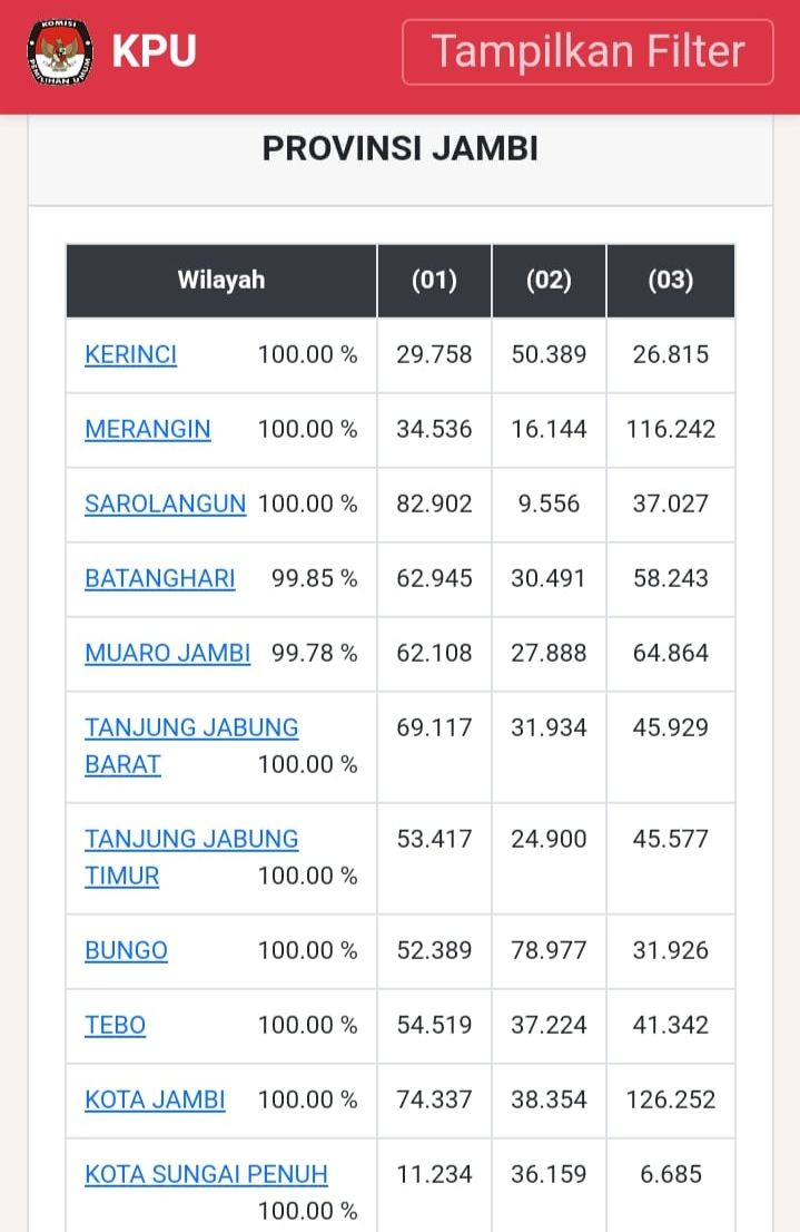 JAMBERITA.COM - Proses penghitungan suara di PSU Pilgub Jambi hampir rampung.