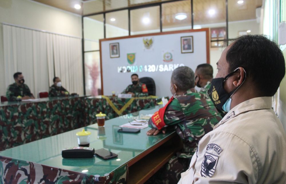 JAMBERITA.COM, Merangin-Memimpin rapat Perwira Staf di ruang vicon Makodim 0420/Sarko Dandim 0420/Sarko Letkol Inf Tomi Radya Diansyah Lubis S.A.P., M. Han secara tegas mengutarakan akan berupaya untuk mensukseskan TMMD Ke 111.Jum’at(9/7/2021).