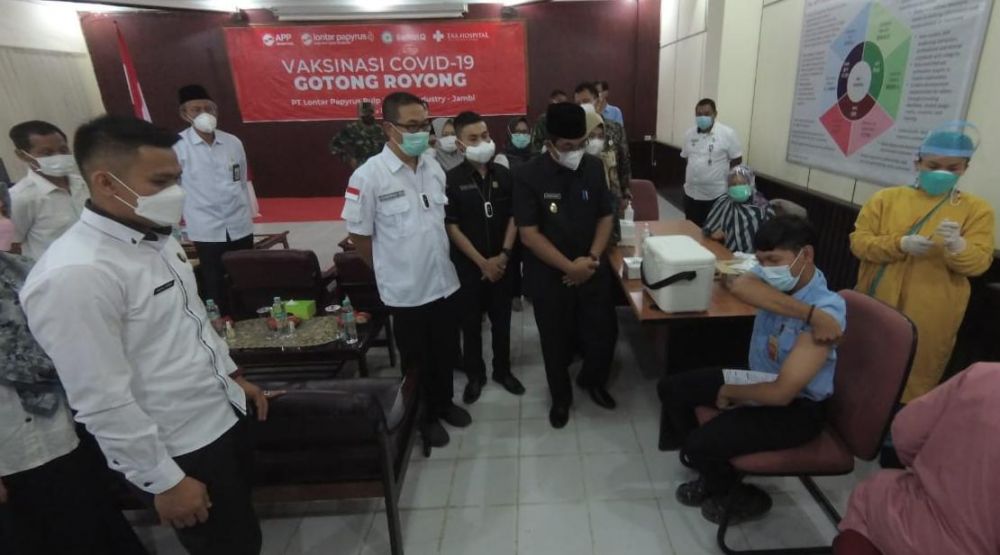 "Kami juga berterima kasih atas bantuan Pemerintah Kabupaten Tanjung Jabung Barat atas dukungan yang diberikan sehingga vaksinasi gotong royong di PT Lontar Papyrus Pulp & Paper Industry dapat berjalan," tambah Suparno.