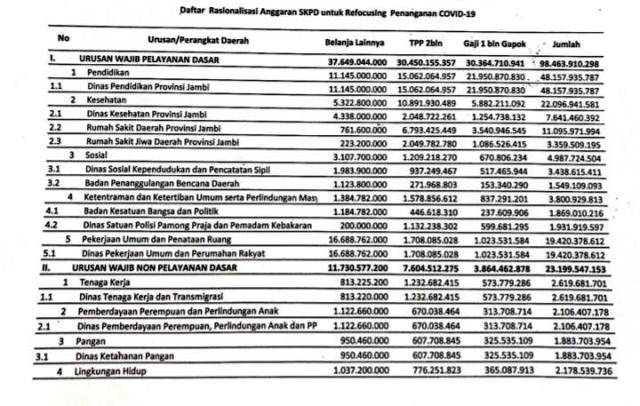 Adapun lampiran I INGUB nomor 25/INGUB/TAPD/2021 disampaikan daftar rasionalisasi anggaran SKPD untuk di refocusing penanganan Covid-19 sebagai berikut.