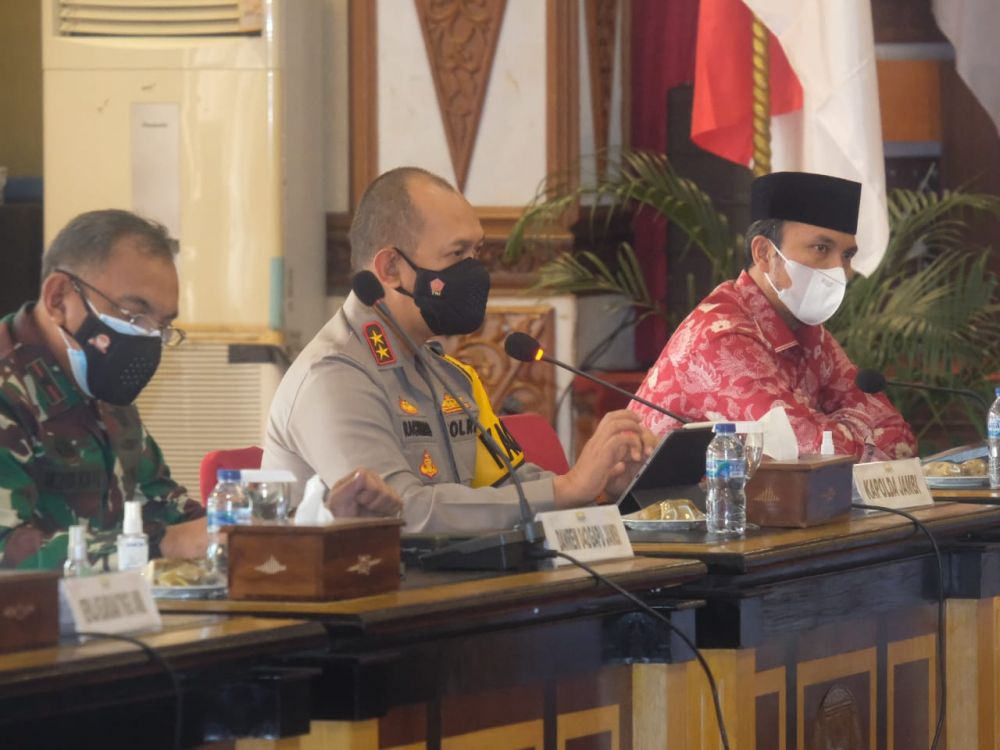 JAMBERITA.COM - Kapolda Jambi Irjen Pol A Rachmad Wibowo menghadiri Rapat Pengamanan dalam rangka Pemantapan Pelaksanaan Musabaqah Tilawati Qur'an (MTQ) Ke-50 Tingkat Provinsi Jambi Tahun 2021 di Kab Tanjab Barat.