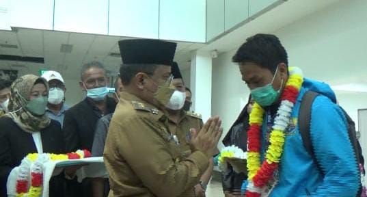 JAMBERITA.COM - Wakil Walikota Jambi Maulana secara langsung menyambut atlet asal Kota Jambi yang mewakili provinsi Jambi dalam Pekan Olahraga Nasional (PON) Papua di Bandara Sultan Thaha Saifuddin. Selasa, (5/10/2021).