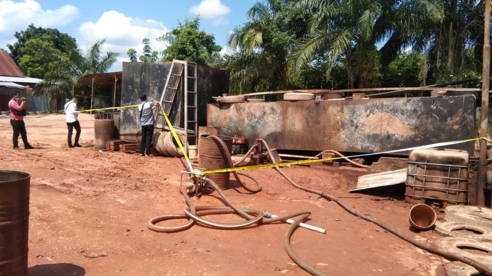 Dilokasi pertama, Barang Bukti yang diamankan yaitu 21 tedmon kosong, 2 tedmon berisi minyak solar olahan kapasitas 2.000 L, 1 tangki kapasitas ± 15.000 L berisi minyak solar olahan, 7 tangki kosong, 1 tangki kapasitas 5.000 L berisi minyak olahan.