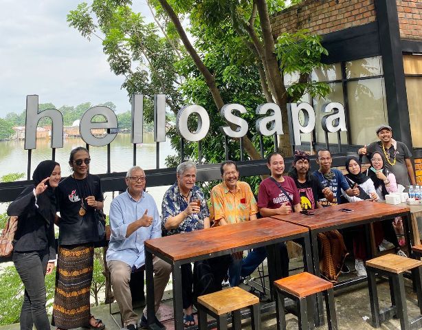 JAMBERITA.COM- Aktor dan sutradara Slamet Rahardjo menyempatkan ngopi di Hellosapa Jambi sambil membincang nasib Teater saat ini, Senin (15/11/2021)