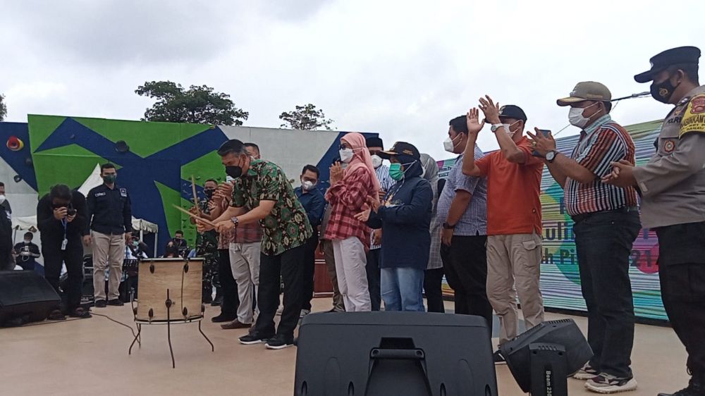 JAMBERITA.COM - Walikota Jambi Syarif Fasha membuka kegiatan festival kuliner yang digelar di Rest Area Danau Sipin. Sabtu, (27/11/2021).