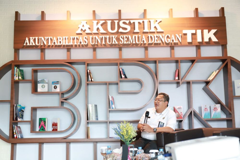 Kepala Perwakilan memperkenalkan inovasi baru BPK Perwakilan Provinsi Jambi yaitu Ruang AkUSTIK kepada para peserta. Ruang AkUSTIK merupakan program/kegiatan yang berfungsi sebagai wadah terpusatnya segala kegiatan/layanan BPK Perwakilan Provinsi Jambi yang berkaitan dengan publik.