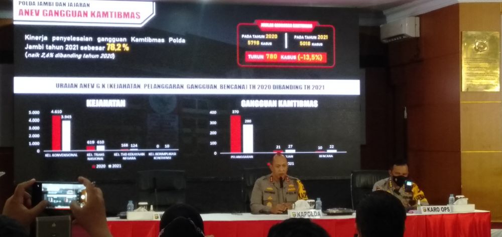 Itu diungkapkan Kapolda Jambi Irjen Pol A Rachmad Wibowo saat menggelar press release akhir tahun di Mapolda Jambi, Jum'at (31/12/2021).