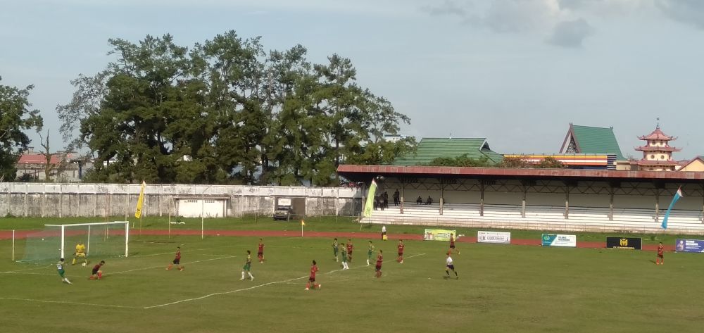 Belum lama bermain, tim Muaro Jambi melakukan kesalahan dengan gol bunuh diri dari pemain bernomor punggung 12 Muhammad Arif.