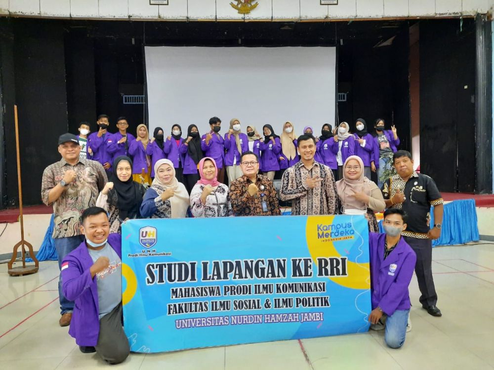 JAMBERITA.COM- Sebanyak 30 orang mahasiswa Prodi Ilmu Komunikasi (IK) Universitas Nurdin Hamzah (UNH) Jambi melakukan studi lapangan ke Radio Republik Indonesia (RRI) Kamis (20/1/2022).