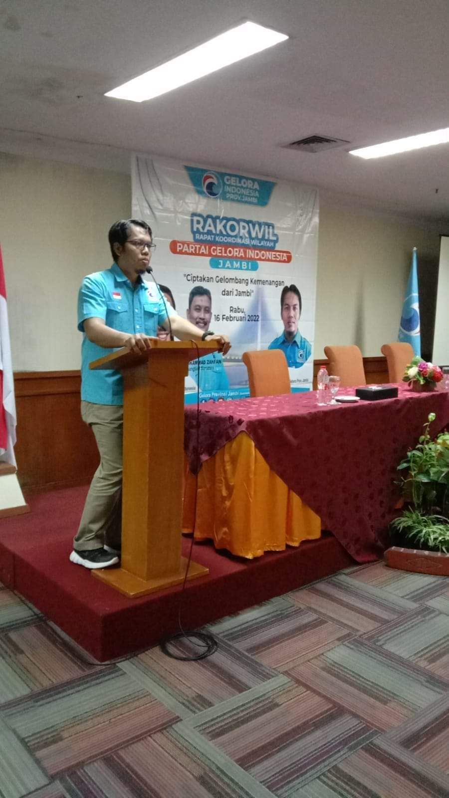 JAMBERITA.COM- Partai Gelora Provinsi Jambi mulai tancap gas untuk menghadapi pemilu 2024 mendatang. Partai besutan Anis Matta ini menggelar rapat koordinasi wilayah (Rakorwil) Provinsi Jambi.